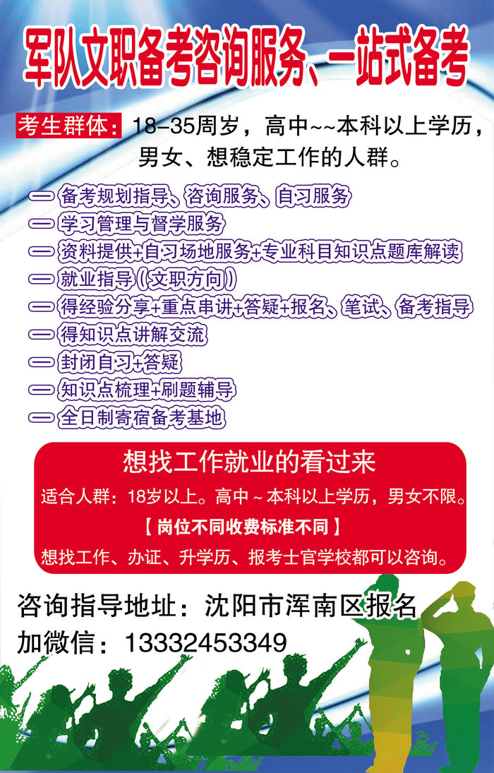 想找工作、办 证、升学历、报考士官学校都可以咨询。